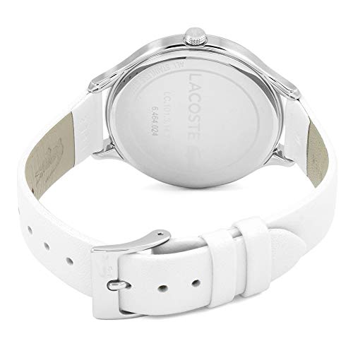 Dit trendy dames Lacoste LC2001005 horloge beschikt over een quartz uurwerk en een prachtige wite band. De kleur van de rond kast van dit dameshorloge is zilverkleurig. Het glas van dit horloge is gemaakt van een sterk mineraal glas. Dit prachtige horloge van Lacoste is gemaakt van staal. De wijzerplaat is in de kleur zilverkleurig.