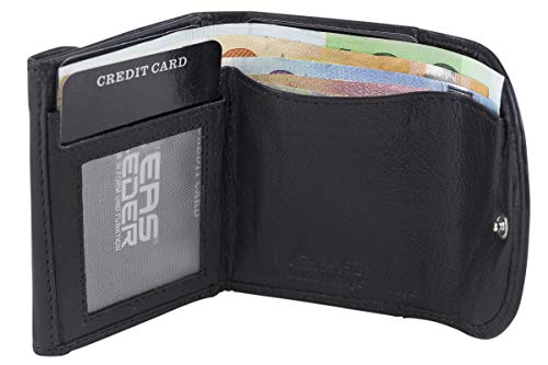 Minibörse LEAS in Echt-Leder, schwarz 1435-01-01 Hersteller: LEAS Farbe: schwarz Eine stabile aus Rindleder gefertigte Minibörse im Querformat. Die Börse beeindruckt durch ihre innovative Wickelform und ihre einfache Handhabung. Während Münzen problemlos im Kleingeldfach ihren Platz finden, können die Scheine im separaten Scheinfach verstaut werden. Zudem lässt sich das Model, aufgrund seiner hervorragenden Größe, bequem und problemlos in der Hosentasche tragen. Material: Die Minibörse ist aus einem weichen, aber dennoch robusten Rindleder gefertigt. Eigenschaften: – Scheinfach – 2 Scheckkartenfächer – 1 Einsteckfach – Einkaufschip im Kleingeldfach – Scheinfach mit Druckknopf – Münzfach mit Druckknopf Maße: Breite 9,5 cm Höhe 6,5 cm