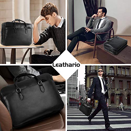 Farbe:Schwarz Leathario aktentasche businesstasche Laptoptasche Echtleder Retro Freizeit, braun Leatharios Taschen sind hochwertige Lederprodukte die durch ausgezeichnete Qualität und zeitloses Design überzeugen. Auch diese Schultertasche überzeugt durch das richtige Format ist für Mann und Frau ein treuer Begleiter im Beruf, Studium und Freizeit. Produktbeschreibung: Marke: Leathario Maße (L x B x H): ca.38*8.5*28cm Material: Edles BüffellederGewicht: 1470Gramm Hochwertig verarbeitetes Innenfutter aus Molton in edlem Braun Schulterriemen: verstellbar und für jede Körpergröße geeignet Innenaufteilung: – 1 geräumiges Hauptfach mit Reißverschluss – 1 eingenähter Steckfach für Handy- 1 weiteres Fach im Hauptfach schließbar mit Reißverschluss für Kreditkarten und Geldbeutel- 1 weiteres Fach auf der Rückseite mit Reißverschluss Unser Service-Versprechen: Unsere Mission ist es Sie von unseren Produkten und unserem einzigartigen Service zu begeistern. Gerne stehen wir Ihnen bei jeglichen Fragen und Anregungen jederzeit zur Verfügung. Ihre Zufriedenheit ist unser größtes Ziel! Falls Sie mit der Ware oder mit unserem Service nicht zufrieden sind, setzen Sie sich bitte mit uns in Verbindung. Unter der Bestellung können Sie die Option „Verkäufer kontaktieren“ finden. Pflegehinweise:Bitte reinigen Sie die Tasche mit Schuhcreme oder anderen professionallen Lederpflegemittel.Keine Wasserwäsche.Lagern Sie die Tasche an einem kühlen, trockenen Ort.Um die Verformung zu vermeiden, bitte stellen Sie Altpapier darin wenn sie für sehr lange Zeit nicht benutzt wird.