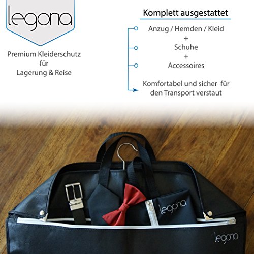2x Premium Kleidersack inkl. Schuhtasche Schützen Sie Ihre Kleidung vor Falten, Schmutz und Feuchtigkeit. Unabhängig davon ob Sie Ihre Kleider im Schrank lagern oder praktisch auf Reisen transportieren möchten, halten unsere langlebigen Kleidertaschen Ihre Kleidung faltenfrei, sauber und sicher verstaut. Wieso unsere Kleidersäcke? Atmungsaktiver, wasserresistenter, säurefreier, 120 g/m² Vliesstoff Verstärkte Nähte und stabile Reißverschlüsse Unsere 110 x 62 cm Kleidertaschen bieten Platz für mehrere Kleidungsstücke Das große Staufach bietet Platz für Ihre Schuhe, Accessoires und vieles mehr Integrierter Anti-Motten-Schutz an der Bügelöffnung Zusammenfalten und fixieren mittels hochwertiger Metall-Druckknöpfe Verstärke Nylon-Griffe für sicheren und praktischen Transport Optimaler Reisebegleiter, leicht zu transportieren Metallecken für mehr Stabilität und Schutz Sichtfenster – Erkennen Sie sofort was sich im Kleidersack verbirgt Inklusive Schuhtasche Das Set beinhaltet eine wasserresistente Organizer-Tasche aus 210d-Nylon welche sich mittels stabilem Reißverschluss schließen lässt. Diese bietet Platz für Ihre Anzugschuhe, High-Heels, Schaftschuhe oder Sneaker bis Schuhgröße EU 47 und durch den Tragegriff ein praktischer Reisebegleiter.