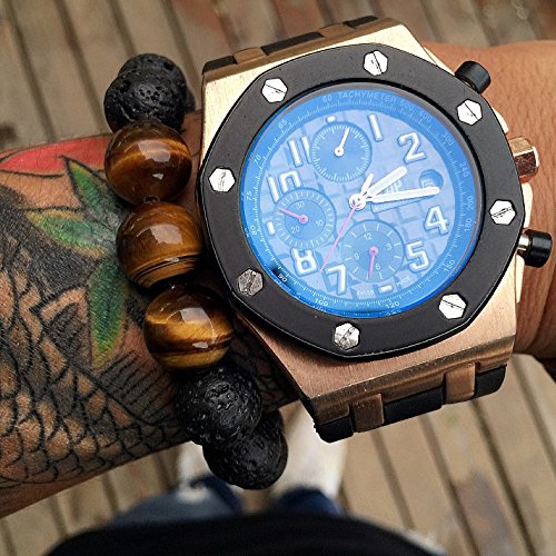 Marke: Lion & Son Lion & Son ist eine moderne Marke im Mode-Schmuck Segment. Unsere Produkte sind stylish, detailliert designed und bescheren den #belion Moment. Wir schaffen keine Objekte, wir kreieren die passende Begleitung für jedes deiner Abenteuer. Perlen: Tigerauge ist eine mikrokristalline, goldbraun. Die durchsichtigen bis undurchsichtigen Perlen haben eine faserige Struktur und zeigen auf den Oberflächen einen seidenähnlichen Glanz. Sie werden in einen Glattschliff verarbeitet und auch als „Katzenaugeneffekt“ bezeichnet. Lava bezeichnet eruptiertes Magma, das flüssig an die Erdoberfläche ausgetreten ist. Nach Abkühlung kann es abgebaut und verarbeitet werden. Gelegenheit: Im täglichen Leben, Geburtstag, Jubiläum. Es ist auch ein großes Geschenk für Ihren Freund, Freundin, Partner, Liebhaber, Mutter, als Dankeschön Geschenk oder Weihnachtsgeschenk. Hohe Qualität: Das Armband kann problemlos mit Wasser im Schwimmbad, in der Dusche oder am Strand in Kontakt kommen. Auch Parfums und Lotion verursachen keinen Verschleiß. Alle unsere Schmuckstücke durchlaufen intensive und strenge Kontrollen, um ein nachhaltiges Produktleben zu garantieren. Es kann problemlos mit Wasser, Parfums oder Lotion in Kontakt kommen ohne Verschleiß zu verursachen. Bedienung: Armband anziehen – Bale deine Finger zu einem Kegel zusammen und gleite mit der anderen Hand das Armband vorsichtig über deine Finger zum Handgelenk hoch. Individuelle Frage – zögere nicht uns zu kontaktieren.