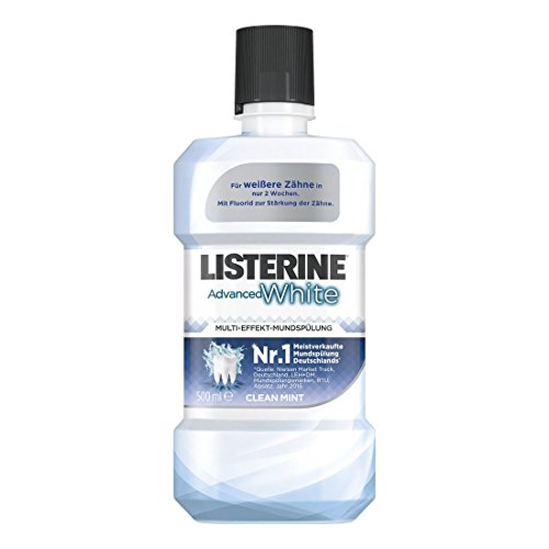 3x Listerine Advanced White, 500 ml Die Listerine Mundspülung Advanced White löst Zahnverfärbungen und beugt neuen vor. Sie hellt mit ihrer Multi-Effekt-Formel die Zähne deutlich mehr auf, als Zähneputzen allein. Die Formel aus 3 ätherischen Ölen bekämpft wirksam Plaque-Bakterien und sorgt zugleich für einen frischen Atem. Fluorid remineralisiert und stärkt die Zähne und wirkt so gegen Karies. Die Whitening-Technologie hilft, auch starke Verfärbungen zu lösen und baut ein Schutzschild gegen neue Verfärbungen auf. – Für natürlich weißere Zähne in nur 2 Wochen – Mit Fluorid zur Stärkung der Zähne – Mit ätherischen Ölen – Wirkt antibakteriell