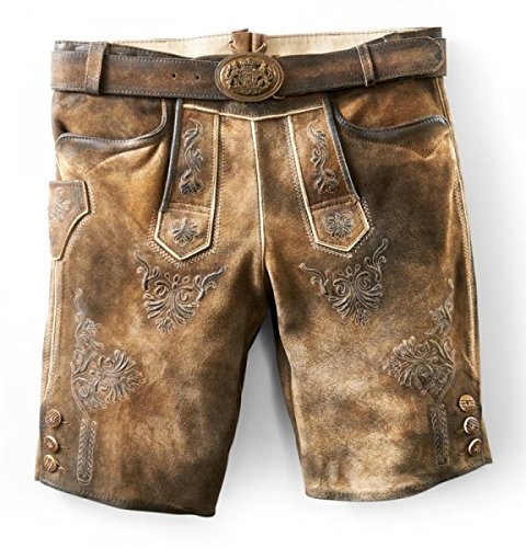 Tolle kurze Lederhose mit GürtelFarbe Ziller AntikHose der ExtraklasseSupertoll in der PassformSuper weiches Leder mit urigen Stickereien.HirschhornknöpfeObermaterial: 100% LederAntik-VerarbeitungMessertascherechts hinten eine Gesäßtasche mit Hirschhornknopf und Schlaufe zum Verschließen.Bundweiten (einfach):(am besten an einer gut passenden Hose aus dem Kleiderschank abmessen)Größe 48: 42cmGröße 50: 44cmGröße 52: 46cmGröße 54: 48cmGröße 56: 50cmGröße 58: 52cm
