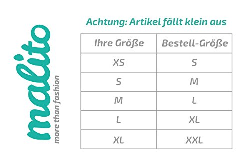 Eigenschaften & Maße:ACHTUNG: Artikel fällt klein aus!- S: Bundweite ca. 36cm, Gesamtlänge ca. 45cm- M: Bundweite ca. 37cm, Gesamtlänge ca. 45cm- L: Bundweite ca. 38cm, Gesamtlänge ca. 46cm-XL: Bundweite ca. 39cm, Gesamtlänge ca. 46cmLeichte Farbabweichungen sind durch Bildschirmeinstellungen möglich.malito-more than fashionBei uns findest du immer die aktuellsten Trends in Sachen Mode und Lifestyle, mit einzigartigen Geheimtipps die es so nur bei uns gibt.Das „malito-more than fashion“ -Logo ist ein eingetragenes Warenzeichen der AMP Distributions GmbH.