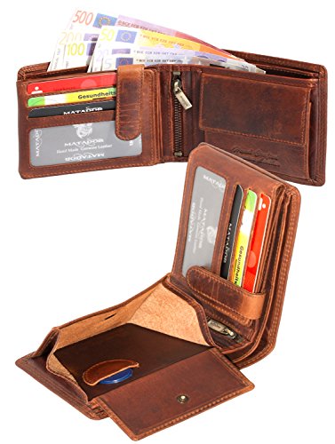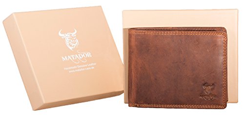 Neu Matador mit RFID Blocker Exklusiv Braun Leder-Portemonnaie Querformat Modell Nr. 6404 inkl. Geschenkbox Jedes Portemonnaie von der Marke Matador ist ein einziges angefertigtes Unikat. Durch diese Geldbörse heben sie Garantiert von der Masse ab. Eine wunderschöne und besonders Exklusives Portemonnaie aus edlem Rindsleder. Dem auffällig strukturierten Rindsleder verleiht jede Geldbörse ein einzigartiges Aussehen. Die Hochwertige Verarbeitung jeder einzelner Geldbörse hält auch anspruchsvollen und Altäglichen Situation stand. Das Produkt verfügt trotz seiner kompakten Grösse über eine Vielzahl an Fächern und Verstaungsmöglichkeiten- zusätzlichen Spielraumsorgt dabei ein ausklappbarer Innenteil.Produkteigenschaften – 9 Kartenfächer jeder Einzeln genäht mit RFID Blocker – zustätzlich abschließbar der kartenfacher mit Drücknopfverschluß – 2 Durchsichtiges Sichtfenster Fach – 2 Fächer für Geldschein bzw. Geldnoten – 1 Kleingeldfach aus Voll Leder mit Drückknopfverschluß – 1 Einkaufswagenchip spezielles Fach in denn kleingeldfach Unsere Naturprodukte werden mit Sorgfalt aus echtem Leder, in verschiedene Lederwerken in Europa in Klassischen Handarbeit hergestellt.>Zur Herstellung unsere Leder Produkte verwenden wir ausschließlich Chrome Free Rohleder Die Farbe der Portemonnaie kann auf Grund der natürlichen Gerbung und Ölung leicht vom aktuellen Foto abweichen