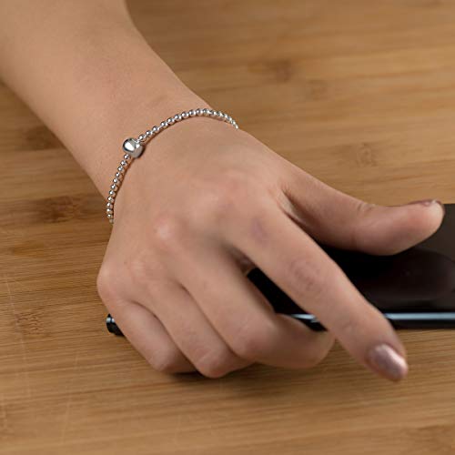 Materia Stretsch-Armband für Frauen Mädchen mit Silberperlen Unser klassisches Kugelketten-Armband besteht aus zahlreichen, aneinandergereihten Kügelchen. Das Armband Made in Germany wurde aus 925 Sterling Silber gefertigt und je nach Modell vergoldet. Die Flexibilität des Armbands garantiert allen Trägerinnen mit einem Handgelenksumfang zwischen 17-22cm einen hohen Tragekomfort. Ein zusätzlicher Vorteil besteht darin, dass Sie das Armband verschenken können, ohne den genauen Handgelenksumfang der Beschenkten zu kennen.Details:- Ausgezeichnete Qualität Made in Germany- Bei Gold und Rosegold Modellen – die Vergoldung ist wasserfest und langlebig- Flexibel, passt auf Handgelenk von 17 bis 22cm Umfang- Kann verschenkt werden, ohne den genauen Handgelenksumfang der Beschenkten zu kennen.Material:- Metall: 925 Sterling Silber mit 925 Silber Stempel- Gold und Rosegold Modelle: entsprechend vergoldetMaße:- Breite Armband: 2mm- Maße große Zierkugel: 7mm- Gewicht: 4,2gVerpackung und Lieferumfang:Perlen Armband wird in schicker Schmuckschachtel verschickt – das perfekte Geschenk für Frau oder Mädchen