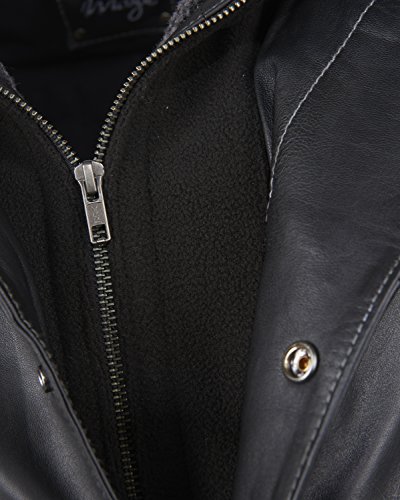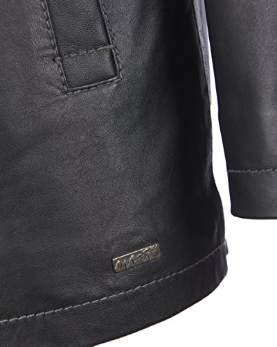 Coole Lederjacke der Trendmarke Maze. Die Jacke aus weichem und sehr hochwertigem Lammnapp-Leder wird mit einem Reißverschluss/Druckknopfverschluss geschlossen und verfügt über viele optische Details. Die Lederjacke ist leicht gefüttert und hat zusätliche einen abnehmbaren Pelzimitat-Einsatz, der besonders in den Herbstmonaten warm hält. Sie besitzt zudem zwei große Innentaschen.