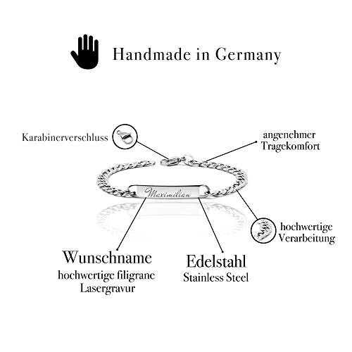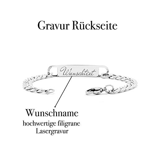 Edelstahlarmband mit Gravur – Das perfekte Geschenk für Paare! Machen Sie Ihrem Partner ein wundervolles Geschenk mit einem personalisierten Edelstahlarmband mit individueller Gravur – auch auf der Innenseite! Auf der Innenseite kann beispielsweise der Jahrestrag verewigt werden. Das Armband besteht aus hochwertigem Edelstahl, ist hautfreundlich und somit auch für Allergiker geeignet. Bitte geben Sie bei der Bestellung Ihre Wunschgravur an: Tragen Sie einfach den Namen in das angegebene Feld ein und wählen dann die Schriftart und das Modell (Frauen oder Herren) aus. Beide Modelle haben eine Länge von 22 cm und sind am Glied verstellbar; das Frauenmodell hat kleinere Glieder – ist aber natürlich auch für Männer geeignet, die schmalere Armbänder mögen! Bereiten Sie mit diesem Armband eine große Freude – egal zu welchem Anlass: Geburtstag, Valentinstag, Jahrestag, Weihnachten oder einfach mal so! Die personalisierten Armbänder werden nach der Bestellung angefertigt. Bitte überprüfen Sie bei Ihrer Bestellung die Richtigkeit Ihrer Eingabe. ✔ HOCHWERTIGES DESIGN ✔ PERSONALISIERTE GRAVUR ✔ ALLERGIKERGEEIGNET ✔ PERFEKTES GESCHENK ✔ GRAVUR AUCH AUF DER INNENSEITE Hinweis: Sonderzeichen, Zahlen sowie Umlaute sind natürlich ebenfalls möglich.