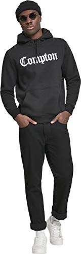 Der Compton Hoody von Mister Tee ist ein echtes Must-have für Fans der legendären West Coast Rap Szene! Der große Front-Print in frischem Weiß ist eine schöne Hommage an die Heimat der Rap-Pioniere N.W.A. und kommt auf dem schwarzen Hintergrund toll zur Geltung. Dank elastischer Rippstrickbündchen an Ärmeln und Hüftabschluss ist Dir eine perfekte Passform garantiert, bei der nichts verrutschen kann. Die großzügige Kapuze kannst Du mithilfe eines praktischen Kordelzugs ganz einfach regulieren, sodass Du stets optimal geschützt bist. Auch die Kängurutasche darf natürlich nicht fehlen und bietet Dir Platz für wichtige Kleinigkeiten oder zum Händewärmen. Für den nötigen Komfort sorgt neben der bequemen Passform vor allem der auf der Innenseite flauschig aufgeraute Stoff aus Baumwolle und Polyester, der sich schön weich auf der Haut anfühlt. Mehr kannst Du von einem Hoody nicht erwarten! Kollektion: Compton Kapuze mit Kordelzug Print auf der Vorderseite praktische Kängurutasche Rippstrick am Arm- und Hüftabschluss weiches Material normal geschnitten Marke: Mister Tee Kat.: Hoodies Farbe: schwarz Material: 70% Baumwolle 30% Polyester