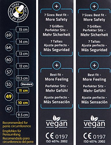 MY.SIZE ist das Kondom, das zu Dir passt: Sicherheit, Qualität und Dein Lustgewinn: FEEL Vergnügen!Produkteigenschaften:MY.SIZE – 7 Größen7 Größen für mehr Sicherheit & Gefühl. Die Kondome von MYSIZE in 7 Größen bieten Dir Vorteile, die Du bei jedem anderen Kleidungsstück schon völlig zu Recht erwartest – es ist Dein Maßanzug für den Sex – und nicht von der „Stange“!Nominale Breite: 47mm / 49mm / 53mmKondomlänge: 160mmMaterial: NaturkautschuklatexForm: ZylindrischGleitgel: SilikonReservoir: jaWandstärke: 0,07mmQualität: ISO 4074: 2002, CE0197ZertifizierungAlle MY. SIZE Kondome sind CE gekennzeichnet und entsprechen der EU-Richtlinie für Medizinprodukte 93/42 EWG, als weiteren Garant für Sicherheit und Zuverlässigkeit.Und, wie von einem Hersteller von Premium Kondomen zu erwarten ist, wird das Produktions- und Managementsystem nach ISO 9001 und ISO 13485 für Medizinprodukte, jährlich von der benannten Stelle TÜV Rheinland LGA Products überprüft.Quelle: Stand: 12/2017