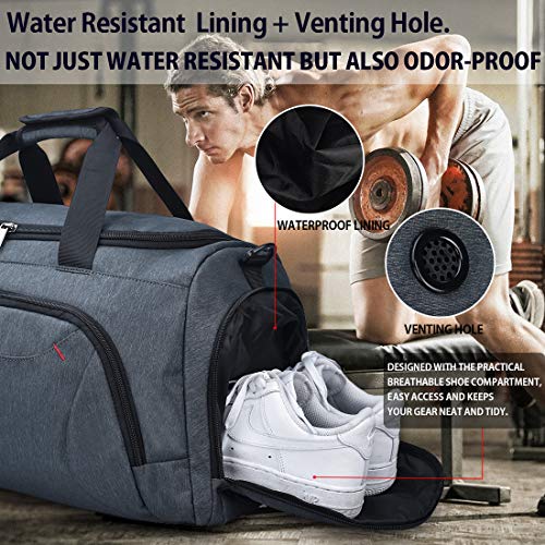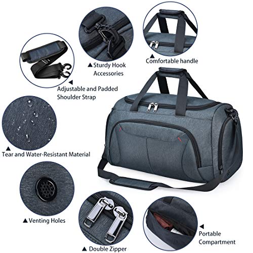Diese Sporttasche hat eine große Kapazität und ist leicht zu tragen. Dank des gepolsterten Schultergurts kann die Reisetasche auch bei schwerem Inhalt problemlos getragen werden. Dies macht die Sporttasche unglaublich praktisch. Nicht nur für das Fitnessstudio, sondern auch für die Freizeit und auf Reisen. Produktdetails: Material: Polyester Größe: 54 * 28 * 26cm Fassungsvermögen: 40L Gewicht: 1,05 kg Farbe: schwarz, grau-blau Stil: einfach und stilvoll, unisex Anwendbare Gelegenheiten: Turnhalle, Sportplatz, Kampieren, Ausgehen über Nacht, Reisen, etc. Struktur: Ein 40-Liter-Hauptfach mit drei Reißverschlusstaschen und einer externen, unabhängigen Schuhtasche. Eine wasserdichte Reißverschlusstasche vorne und hinten sowie eine seitliche Reißverschlusstasche mit Netztasche. Die zusätzliche Schuhtasche mit außenliegenden Reißverschlüssen und belüfteten Luftlöchern sorgt dafür, dass die nassen, schmutzigen Schuhe von anderen Gegenständen getrennt werden. Hinweis: * Wir geben 6 Monate Garantie. * Bei Problemen mit einer Sporttasche können Sie sich gerne an uns wenden. Wir werden Ihnen innerhalb von 24 Stunden antworten:) * Da die Sporttasche manuell gemessen wird, ist zu beachten, dass möglicherweise ein Fehler von 1-2 cm vorliegt:)