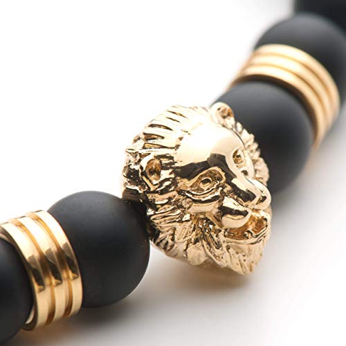 Obelizk Lion Series – Gold Black Onyx Matte Herrenarmband Obelizk ist eine deutsche Marke mit Fokus auf edlen Schmuck und Accessoires für Männer. Produktdetails: Das Grundmaterial ist aus 316L rostfreiem Stahl. Dies entspricht der deutschen Norm und ist somit frei von Nickel, Cadmium und Blei. Die Stahl Elemente sind mit echtem Gold überzogen. Die Armbänder sind aus 4 Edelstahlelementen und insgesamt 22 Onyx / Jasperperlen gefertigt. Durch unsere Qualitätsprüfung garantieren wir beste Qualität Größen: Die Armbänder haben einen Innenumfang von ca. 19,5 cm. Hinweis: Das Armband wird in einer hochwertigen, aufklappbaren Schmuckbox mit schöner schwarz glänzenden Schmuckeinlage versendet Auch für Allergiker geeignet