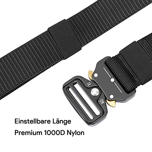 Qhui Taktisch Gürtel die perfekte ergonomische lösung für ihre tragenden brauchtHöhepunkt:★Schwerlast Schnalle: Zink-Legierung Material, langlebig, Anti-Korrosion, Anti-Rost, Schnellfreigabe.★Bequemes Material: High Qualität 1000D Nylon, breathable dennoch bequem.★Collocation: Prohose, taktische Hose, Arbeit Hose, Jeans und Casual HoseSpezifikation Größe:Gürtel gurtband: 3.8cm / 1.5inchGürtel länge: 125 cm (49 zoll)Package: 1*Taktische Gürtel, 1*Kesselschnalle Farben: SchwarzHinweis:Das gurtband gürtel insgesamt punkt ist noch nicht beschriftet oder beglaubigte klettern oder als lebensrettende Ausrüstung.