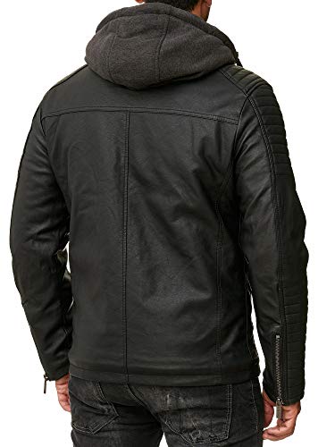 Gefütterte Redbridge Herren Biker- Jacke – Übergangsjacke – Steppjacke aus Kunstleder in der Farbe Schwarz. Beschreibung Redbridge Bikerjacke: Wie kann man ein tolles Produkt noch besser machen? Dies ist das Ergebnis. Es wurde die beliebte Standard Version der Red Bridge Biker- Lederjacke M6013 als Basis genommen und um ein paar Details erweitert. Diese Jacke besitzt nun eine integrierte warme Kapuze mit hoch schließenden Kragen und hochwertigen, dicken Kordeln. Der daran angebrachte Reißverschluss verläuft über die gesamte Front, unterhalb des normalen Reißverschlusses. So wird der Anschein erweckt als würde man einen Zip Hoodie – Kapuzenpullover unter der Jacke tragen, welcher immer perfekt sitzt. Im Punkt Qualität hat sich der Vorgänger bereits mehr als bewiesen. Und dies ist hier nicht anders. Das hochwertige Kunstleder ist angenehm weich und in der Haptik fast nicht von echten Leder zu unterscheiden. Desweiteren ist ein Metall-Logopatch auf dem linken Arm dazu gekommen Merkmale: Taschen: seitliche Eingrifftaschen mit Reißverschluss, eingelassene Brusttaschen mit Reißverschluss, Innentasche mit Druckknopf Verschluss-Typ: doppelter Reißverschluss, Stehkragenband mit Druckknopf, dicke Kordeln Zipper an den Órmelenden Kragentyp: Kapuze mit Stehkragen, Kragenband mit Druckknopfverschluss Absteppungen auf den Schultern, dem Oberarm und am Órmelabschluss Metall-Logopatch auf dem linken Arm Órmelart: Langarm Material: Oberstoff: 100% Polyurethan, Kapuze: 65% Baumwolle, 35% Polyester, Futter: 100% Polyester, Füllung: 100% Polyester Materialeigenschaften: Robust, angenehm weich in der Haptik, angenehmer Tragekomfort Passform: Normal, gerade verlaufend Länge: Hüftlang Größe: der Artikel fällt Normal aus Artikelnummer: M6013H Biker-Jacke 2.0