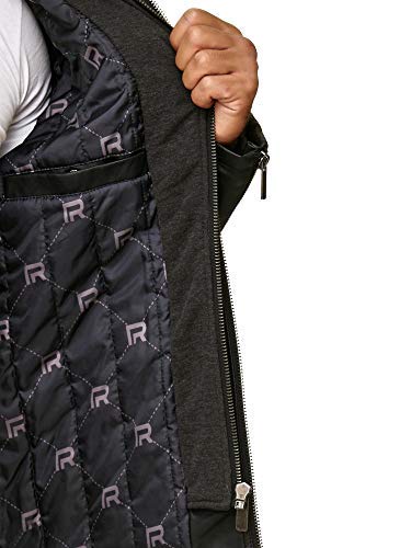 Gefütterte Redbridge Herren Biker- Jacke – Übergangsjacke – Steppjacke aus Kunstleder in der Farbe Schwarz. Beschreibung Redbridge Bikerjacke: Wie kann man ein tolles Produkt noch besser machen? Dies ist das Ergebnis. Es wurde die beliebte Standard Version der Red Bridge Biker- Lederjacke M6013 als Basis genommen und um ein paar Details erweitert. Diese Jacke besitzt nun eine integrierte warme Kapuze mit hoch schließenden Kragen und hochwertigen, dicken Kordeln. Der daran angebrachte Reißverschluss verläuft über die gesamte Front, unterhalb des normalen Reißverschlusses. So wird der Anschein erweckt als würde man einen Zip Hoodie – Kapuzenpullover unter der Jacke tragen, welcher immer perfekt sitzt. Im Punkt Qualität hat sich der Vorgänger bereits mehr als bewiesen. Und dies ist hier nicht anders. Das hochwertige Kunstleder ist angenehm weich und in der Haptik fast nicht von echten Leder zu unterscheiden. Desweiteren ist ein Metall-Logopatch auf dem linken Arm dazu gekommen Merkmale: Taschen: seitliche Eingrifftaschen mit Reißverschluss, eingelassene Brusttaschen mit Reißverschluss, Innentasche mit Druckknopf Verschluss-Typ: doppelter Reißverschluss, Stehkragenband mit Druckknopf, dicke Kordeln Zipper an den Órmelenden Kragentyp: Kapuze mit Stehkragen, Kragenband mit Druckknopfverschluss Absteppungen auf den Schultern, dem Oberarm und am Órmelabschluss Metall-Logopatch auf dem linken Arm Órmelart: Langarm Material: Oberstoff: 100% Polyurethan, Kapuze: 65% Baumwolle, 35% Polyester, Futter: 100% Polyester, Füllung: 100% Polyester Materialeigenschaften: Robust, angenehm weich in der Haptik, angenehmer Tragekomfort Passform: Normal, gerade verlaufend Länge: Hüftlang Größe: der Artikel fällt Normal aus Artikelnummer: M6013H Biker-Jacke 2.0