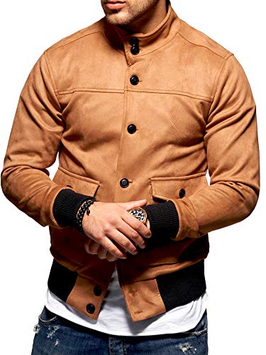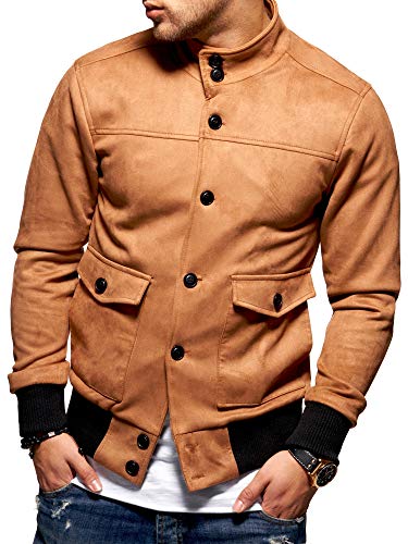 Kunstlederjacke für Herren Suede Wildleder-Optik Stehkragen Knopfverschluss 2 Außentaschen, 1 Innentasche Rippstrickbündchen Modell: K-1001 Material: 50% Baumwolle, 47% Polyester, 3% Elasthan Futter: 100% Polyester