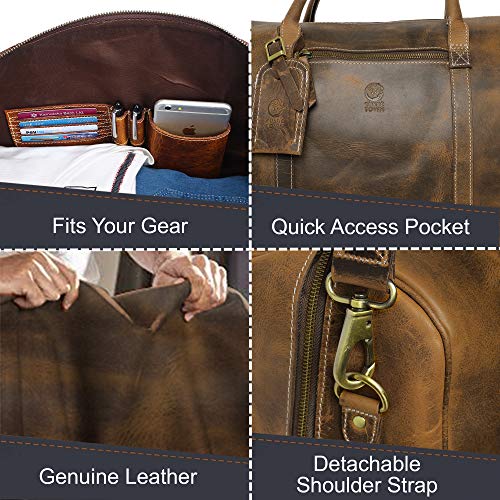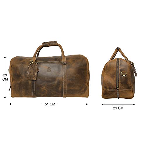 Suchen Sie mehr als nur eine einfache Reisetasche? Möchten Sie eine Weekender Bag, die styisch aussieht – und zugleich robust genug ist, um Schwergepäck standzuhalten? Sobald Sie diese elegant aussehende Leder Tasche von Rustic Town in die Hände bekommen, werden Sie Reisen und Ausflüge planen, nur damit Sie Ihren Weekender benutzen können. Durch das zweifarbige Design und den wunderschönen natürlichen Musterungen macht die Echtleder Travel Bag ein Style-Statement, wie Sie es zuvor noch nicht gesehen haben. Abmessungen: 20″ x 11.5″ x 8.25″ Hervorragende Handarbeit Aus Büffelhaut Echtleder – weich und geschmeidig Viele Fächer für eine bessere Organisation Anpassbarer Schultergurt & Trage Henkel Stabiler YKK Reißverschluss Qualitatives Innenfutter Details aus Messing Zusammenklappbar & überall verstaubar, wenn Sie die Reisetasche nicht im Einsatz haben. Stabil & strapazierfähig: Im Gegensatz zu Reisetaschen aus synthetischen Materialien, die dazu neigen, schnell zu reißen oder auszuleiern, sind unsere Taschen aus dickem Leder gefertigt und halten vielen Belastungen stand. Diese Duffle Bag wird DIE EINE Reisetasche für Sie; und das für viele Jahre. Leder wird geschmeidiger, wenn Sie die Ledertasche im Einsatz haben: Sie werden das geschmeidig, organische Büffelhautleder der Außenseite Ihrer Tasche lieben. Viel besser noch: Jedes Mal, wenn Sie die Tasche verwenden, wird sie noch weicher. Wer hat schon eine Handgepäck Tasche, die schöner wird, je älter sie ist. Lassen Sie also das gewöhnliche und langweilige Handgepäck zuhause. Die Rustic Town Luggage Bag ist ein ausgezeichneter Reisebegleiter, der Komplimente an sich zieht, wo auch immer Sie sich aufhalten. Klicken Sie auf „Zum Einkaufswagen hinzufügen“ um die Tasche jetzt zu kaufen.