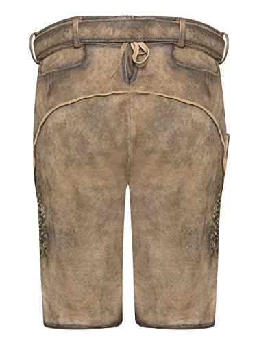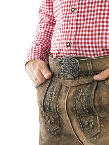 Herren Trachten Lederhose Schöneberger Trachten – Herren Modell Ludwig inkl. Trachtengürtel Das rustikale und sehr hochwertige Modell Ludwig der Marke Schöneberger Trachten ist die klassische Trachtenlederhose für jeden Anlass und im kurzem Schnitt gefertigt. Das hochwertige Leder (Ziege) garantiert eine lange Haltbarkeit und ein angenehmes Tragegefühl. Besonders hervorzuheben sind die aufwendigen und detaillierten Stickereien am Hosenlatz, dem Hosenträger, Messertasche und dem Hosenbein, sogar im hinteren Teil der Seitennaht. Die Hose der ideale Begleiter für jedes Volksfest, Wanderung und das Oktoberfest. Mittels dem Lederbändchen am Hosenbund, können Sie die Hose individuell auf Ihre Größe abstimmen. Das Modell „Ludwig“ ist ein echter Klassiker mit hohem Tragekomfort! Produkteigenschaften: verfügbare Farben: braun Material: 100% Leder Schnittform: gerader Schnitt Passform/Weite: Schmal Taschen: 2 Taschen vorne | 1 Messertasche an der Seite | 1 knöpfbare GesäßtascheH- der Trachtengürtel ist im Lieferumfang enthalten Passform: Bitte beachten Sie, dass diese Trachtenhose aus echtem, natürlichem Leder gefertigt ist, deswegen kann diese beim ersten Tragen ruhig ein wenig enger sitzen. Im Laufe der Zeit weitet sich die Hose noch ein wenig und passt sich Ihrer Körperform an. Größentabelle: Gr. 46: Bundweite: 79-82 cm Gr. 48: Bundweite: 83-86 cm Gr. 50: Bundweite: 87-90 cm Gr. 52: Bundweite: 91-95 cm Gr. 54: Bundweite: 96-100 cm Gr. 56: Bundweite: 101-105 cm Gr. 58: Bundweite: 106-110 cm Gr. 60: Bundweite: 111-115 cm