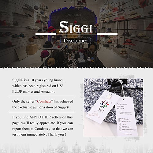 Das locker verwobene Stroh schützt vor der Sonne, lässt aber gleichzeitig auch ein laues Lüftchen an den Kopf. HaftungsausschlussNur der Verkäufer „Comhats EU“ hat die ausschließliche Genehmigung von Siggi®erhalten. Wenn Sie irgendwelche ANDEREN Verkäufer auf dieser Seite finden, wir sind wirklich darkbar, wenn Sie sie an Comhats melden können!SaisonFrühling und Sommer.Waschanleitungmit einem feuchten Tuch schrubben ,dann troken die auf the LuftSiggi® Siggi, eine 10-jährige junge Marke im Bereich der Hüte, was ist sehr beliebt für einzigartiges Design und Premium-Qualität im Weltmarkt. Als offizieller Partner von SWAROVSKI, Teddy-Bear, usw., haben wir viele klassische Entwerfe geschaffen .Die sind sehr willkommen in Nordamerika und Europa market. Jetzt planen wir , dass wir unsere klassische Hüte auf Amazon Markt mitnehmen ,und wir hoffe, dass Sie gern sie möchten werden.
