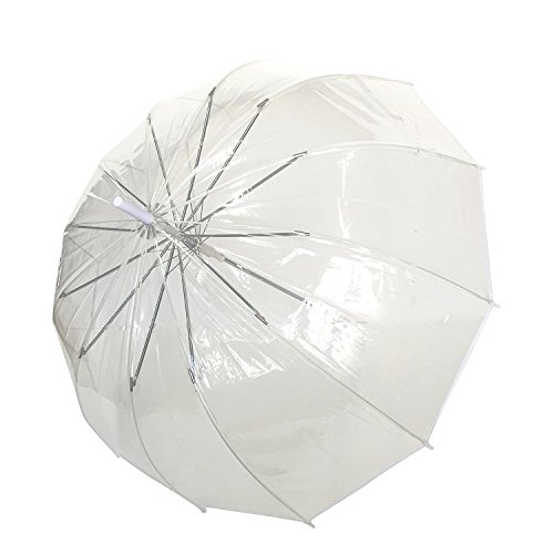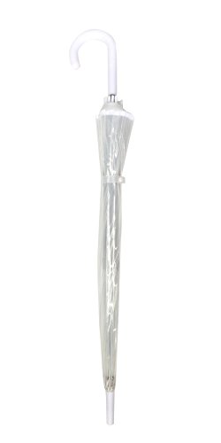 Dieser große Schirm hat einen durchsichtigen Bezug, mit weißer Umrandung und weißem Kunststoffgriff. Länge des geschlossenen Regenschirm: 89cm, Durchmesser: 102cm Automatic Opening-System Baugröße 12 Rippen Metall Poe Leinwand, Kunststoff-Griff