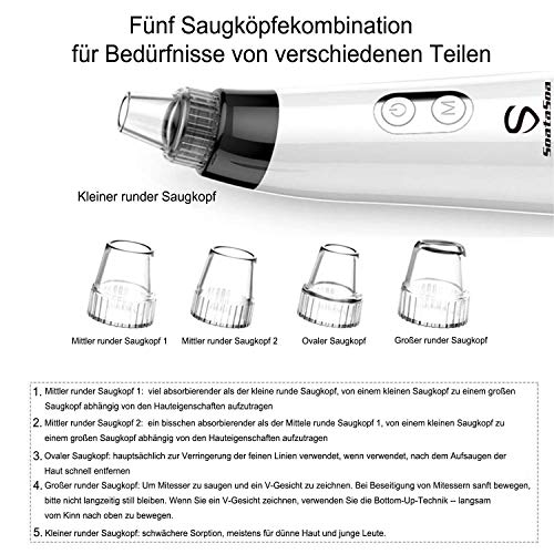 gesichtsreinigung empfindliche haut-Elektrischer MitesserentfernerEin revolutionäres neues Gesichtspflegeprodukt zielt darauf ab, Mitesser effektiver zu reinigen. Reinigen Sie den Mitesser mit physikalischen Mitteln, nicht reizend, elektrische Mitesserentferner saugen den Mitesser und massieren die Haut. Starkes Saugen zieht den Mitesser raus. Darüber hinaus hilft dieses Produkt Ihnen, die Poren zu verfeinern. Effektiv, sicher, nicht reizend, beliebtes Produkt!–Soafiya pickel ausdrücken werkzeug.reinigung gesicht poren-Sicher und schmerzlosIm Vergleichen mit Mitesser-Gesichtsmaske, die Hautallergie verursachen kann, ist elektrischer Mitesserentferner sicherer. Hergestellt mit Qualität hochwertige ABS, hautfreundlich. Darüber hinaus schmerzlose Mitesserentfernung, nach der Verwendung von Soafiya elektrischen Mitesserentferner, wollen Sie die traditionellen Mitesser-Ausziehwerkzeug und Mitesser-Gesichtsmaske nicht mehr verwenden.SoataSoa blackhead remover-3Beauty Lichter PflegeLED Grünes / Blaues / Rotes Licht Pflege-Dieser Gesichtreiniger kommt mit 3 Beauty-Lichter Pflege: 620nm Rotes Licht kann die Elastizität der Haut erhöhen; 415nm blaues Licht kann die Akne der Haut entfernen und die Poren schrumpfen; 530nm Grünes Licht kann die Ödeme entfernen und die fettige Haut, Akne usw. verbessern.hautpflege frauen trockene haut-Vervollkommnen Sie Ihre Hautbehandeln Sie Kurspore, rauhe Haut, entfernen Sie abgestorbene Haut, Mitesser, Akne und feine Linien mit körperlicher Methode, verbessern Sie und stellen Sie die Haut wieder her, ohne eine Spur zu hinterlassen, die Haut ist glatt und empfindlich.Technische Daten:Spannung:5V-1APower:3WSaugkraft Stufen:5 StufenArbeitszeit:120 MinutenBatterie:1000mahAbmessungen:175*45*45mm
