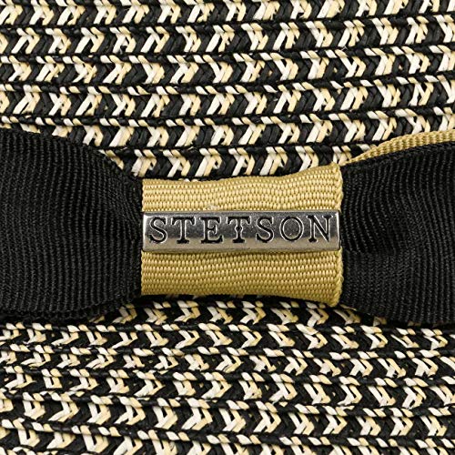 Mit dem kontrastreichen Strohhut aus dem Hause Stetson kann der Sommer beginnen. Mehrfarbig meliertes Toyostroh und eine zweifarbige Ripsandschleife machen diesen Trilby zum eleganten Sommer-Accessoire, das fast jedes Outfit stillvoll abrundet. Damit ist ein aufsehenerregendes Auftreten im Urlaub gesichert. Damit man dabei vor starken Sonnenstrahlen geschützt ist, wurde der Sommerhut mit einem 40-fachen UV-Schutz ausgestattet. Mit metallenem Markenemblem.