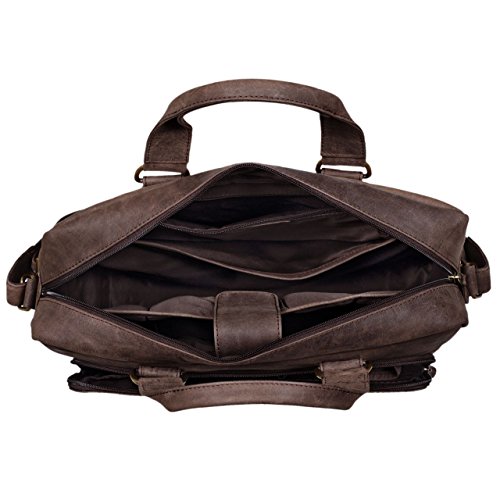STILORD 'Joshua' Vintage Businesstasche Leder großVintage Liebhaber aufgepasst: Die STILORD Businesstasche 'Joshua' überzeugt durch ein ausgeprägtes Vintage Design und einen modernen Used Look. Robustes Echtleder verleiht der Herren Ledertasche nicht nur Langlebigkeit, sondern ebenso eine hochwertige Optik. Neben einem einzigartigen Design bietet die Bürotasche zahlreiche Verstaumöglichkeiten: Bücher und breite DIN A4 Ordner können in dem großen Hauptfach untergebracht werden, das gepolsterte Laptopfach (32 x 24 cm) ist für Laptops und MacBooks bis 13.3 Zoll geeignet. Mit der Leder Businesstasche 'Joshua' kommt jeder Vintage Fan auf seine Kosten – ein stilvoller Eindruck in Büro und Uni garantiert! Highlights: 'Joshua' Vintage Businesstasche groß Leder groß- Vintage Businesstasche Leder im modernen Used-Look mit charakteristischen Kratzern und Farbabweichungen- Aufbewahrungsmöglichkeiten im Hauptfach (ungepolstert): 15.6 Zoll Laptops, DIN A4 Order (8 cm Rücken), Bücher- Laptoptasche mit gepolstertem Laptopfach (32 x 24 cm) für 13.3 Zoll MacBooks- Außenfächer für die Unterbringung von Smartphone, Stiften, Kreditkarten- Business Handtasche mit Tragegriff sowie Umhängetasche mit verstellbarem Schultergurt (90 – 140 cm | 4 cm breit)- Reißverschluss für einen sicheren Verschluss und Metallfüße für einen stabilen Halt der Dokumententasche- Aufteilung: Hauptfach mit 1 x Nebenfach, 1 x Reißverschlussfach und 1 x Laptopfach | 1 x Reißverschlussfach auf der Rückseite | 1 x Reißverschlussfach auf Vorderseite mit Organisationsleiste: 5 x Kartenfach, 3 x Stiftehalter, 1 x Handyfach- Abmessungen: ca. 38 x 29 x 11 cm | Modell: Joshua | Gewicht: 1140 Gramm | Material: Leder | Lederart: echtes Rindsleder im Vintage Look | Hersteller: STILORD | Kompatibilität: 15.6' Hauptfach (ungepolstert), 13.3' Laptopfach