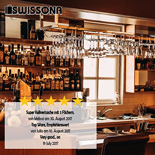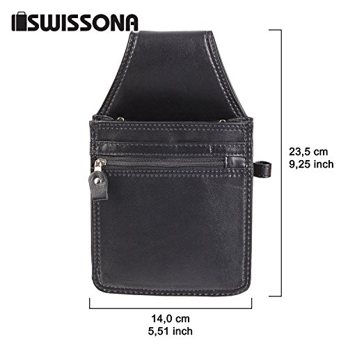 ✯✯ SWISSONA KELLNERTASCHE ✯✯ Die SWISSONA Kellnertasche ist, dank ihrer praktischen Aufteilung, der perfekte Helfer im Arbeitsleben jedes Kellners. ✯✯ HIGHLIGHTS ✯✯ – Praktische Aufteilung: Die SWISSONA Kellnertasche verfügt über mehrere Taschen, in denen sich die Kellnerbörse, Stifte, Blöcke und andere Utensilien unterbringen lassen – Verstärkte Nähte: Durch die Arbeit mit Doppelnähten hält die Kellnertasche besonders viel aus – Einfache Befestigung: Die SWISSONA Kellnertasche lässt sich ganz einfach und schnell an der Hose oder der Schürze befestigen – Pflegeleicht: Die Oberfläche des Kunstleders ist abwischbar, dadurch ist die Kellnertasche besonders pflegeleicht – Extra Einsteckfach: Die Tasche ist mit einem extra Fach für den Stift ausgestattet, so dass dieser immer griffbereit ist – Schlichtes Design: Ganz in Schwarz gehalten, lässt sich die SWISSONA Kellnertasche optimal kombinieren ✯✯ AUF GEHT'S – MIT SWISSONA KANN DIE REISE BEGINNEN! ✯✯ SWISSONA Produkte stehen nicht nur für hohe Qualität und eine solide Verarbeitung, sondern auch für Cleverness. Nicht umsonst lautet der Slogan der Marke „Travel smart“. Entscheiden auch Sie sich für sorgenfreies und entspanntes Reisen durch die gute Organisation und das gewisse Etwas mit SWISSONA und die Reise kann beginnen!