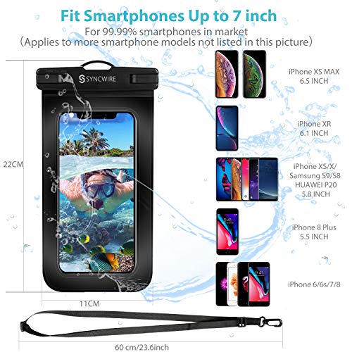 IPX8 SchütztDer zertifizierte Schutz gegen Wasser IPX8 schützt Ihr Handy und hält es trocken bis zu einer Wassertiefe von 30 Metern, auch bei Wassersport. (Bitte beachten Sie: Bei einer bestimmten Wassertiefe beeinflusst der Wasserdruck die Funktionsweise des Touchscreens. In diesem Fall machen Sie bitte Fotos, indem Sie den Lautstärkeregler betätigen.)Voller SchutzDas spezielle Einrasten-und-Versiegeln-System garantiert besondere Wasserbeständigkeit, Sicherheit und Verlässlichkeit. Beidseitig durchsichtige Sichtfenster erlauben volle Funktionalität des Tochscreens. So wird Fotografieren unter Wasser einfacher und praktischer. Wie Sie diesen wasserfesten Beutel verwenden.1. Entsperren Sie das Gehäuse, indem Sie die Tasten drücken2. Öffnen Sie vorsichtig den Clip3. Legen Sie das Telefon in den Beutel4. Drücken Sie die Tasten5. Ziehen Sie den Riemen fest6. Viel Freude beim Wassersport!Kompatibel mitiPhone XS Max XR X 8 8 plus 7 7 plus 6 6 plus 6s 6s plus 5 5s 5c SE 4s Samsung Galaxy S10+ S10 S10e S9+ S9 S8+ S8 S7 S6 S5 Samsung Galaxy Note 9 8 7 6 5Huawei P30 P30 Pro P20 P20 Pro P20 Lite P10 P10 Plus P9 P9 PlusHuawei Mate 30 20 20 pro 10 10 pro 9 9 Pro LG, Sony, Nexus, Nokia, HTC, Xiaomi, OnePlus, Google Pixel und andere handys unter 7 Zoll.