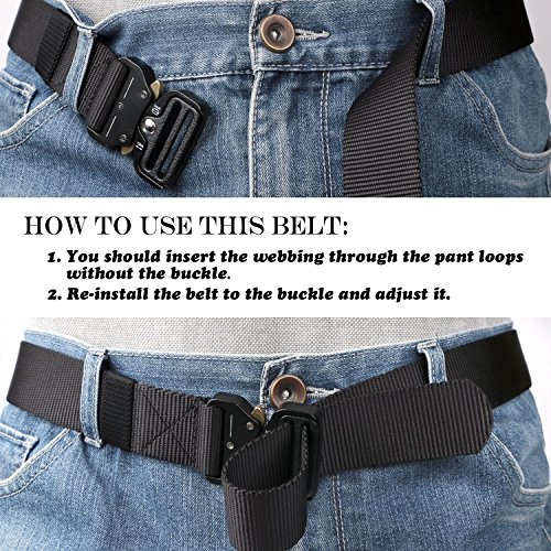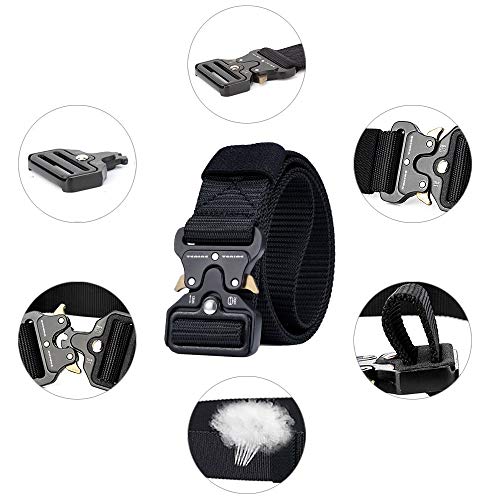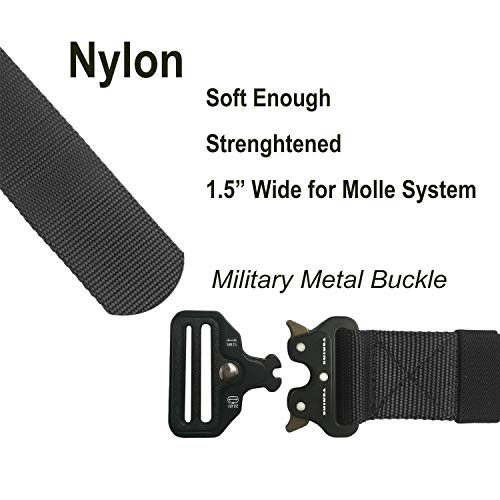 Taktischer Gürtel, TENINE Taktisch Gürtel Schwerlast Militär Nylon Web Gurt Riggers Belt,Tenine Schnellverschluss Metallschnalle Bund mit Taktischen Molle Schluesselhaken 1. Farben: Schwarz, Army Green, Coyote Brown 2. Durch die stufenlos verstellbare Metallschnalle ist der Gürtel auf jede erdenkliche Größe einstellbar 3. Dieser taktische Gürtel besteht aus atmungsaktivem Nylon-Material, das eine starke Schweißverdunstung aufweist, bequemer und atmungsaktiver ist. 4. Bestes Geschenk: Es ist für fast alle Altersgruppen geeignet, männliche Alltagskleidung und schönes beliebtes Geschenk für Studenten, Jugendliche, Männer, alte Männer als Vatertagsgeschenk, Erntedankfestgeschenk, Weihnachtstagsgeschenk. 5. Dieser Stoffgürtel ist ein super lässiges Accessoire für Indoor- und Outdoor-Aktivitäten, ein sehr nützliches Werkzeug für CS-Spiele, Kriegsspiele, Jagd, Schießen, Wandern, Reiten, Fahren, Angeln, Golfen, Klettern, Camping oder Militär. Technische Daten: 1. Cobra Schnalle Gürtel: Gürtel Länge (mitgelieferte Schnalle): 125 cm, Breite: 3,8 cm, Dicke: 3 mm 2. Elastische Gürtelschnalle: Gürtel Länge (mitgelieferte Schnalle): 120 cm, Breite: 3,8 cm, Dicke: 3 mm Lieferumfang: 1 x Cobra Schnalle Gürtel(inklusive schlüsselanhänger) oder 2 x Elastischer Schnalle Gürtel Achtung bitte !!!Die hochwertigen Nylongürtel werden nur von TENINE Co., Ltd. verkauft. Wenn Sie einen hochwertigen Gürtel anstelle von Müll oder etwas Unbekanntem möchten, überprüfen Sie bitte sorgfältig den Namen des Verkäufers, bevor Sie bezahlen. Wir bieten keine Garantie für Gürtel, die Sie bei anderen Anbietern gekauft haben. TENINE ist der einzige AUTORISIERTE Verkäufer. Garantie: 1 Jahre Qualitätsgarantie. Problemlose 30-Tage-Rückgaberecht.