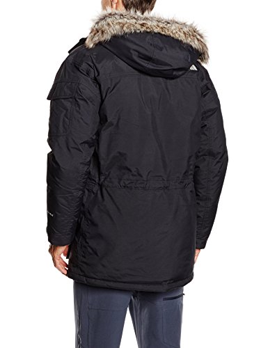 The North Face McMurdo Parka Men Mittleres Gewicht: 1.713 g Rückenlänge: 89 cm Material: 100% Polyamid Obermaterial: 100% Polyamid (2-Lagen Laminat HyVent) Innenfutter: 100% Polyester Isolation: 550er Gänsedaunenfüllung Wasserdicht, Atmungsaktiv, Winddicht Der The North Face Mens McMurdo Parka ist eine gefütterte, wasserdichte Jacke mit Kultstatus, die mit dem härtesten Winterwetter zurechtkommt. Der Parka ist ein echtes Lieblingsstück und ein erfolgreicher Bestseller: er überzeugt mit einer 550 Cuin Daunenfüllung, wasserdichtem, atmungsaktivem und voll verschweißtem Außenmaterial sowie einem angenehmen Taft-Innenfutter. Die Kapuze schützt den Kopf bei Kälte und ist abnehmbar, genauso wie ihr Kunstfellrand. Großzügige Taschen innen und außen sowie am Ärmel bieten jede Menge Stauraum. Verstellbare Schnürzugsysteme in Saum und Taillenbund sowie Velcro Klettverschlüsse an den Ärmelbündchen. Vorn und hinten sind L