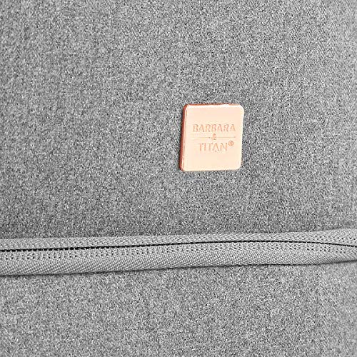 TITAN „Barbara & Titan“, 49 cm Weekender, grau Diese elegante TITAN-Koffer-Serie wurde exklusiv mit dem Magazin BARBARA designt. Hochwertig in Filzoptik. Alle Gepäckstücke sind aus edlem, hochwertigem Herringbone-Polyester in moderner Filzoptik gefertigt. Die weiche Oberfläche ist nicht nur besonders strapazierfähig, sondern auch wasserabweisend. Mit femininen Details. Die grauen Koffer und Accessoires bestechen mit rosafarbenen Reißverschlüssen, während das Innenfutter in frischem Koralleton zusätzlich feminine Farbakzente setzt. Zahlreiche Highlights in Roségold wie der abnehmbare Schlüssel-anhänger in Schleifenform sind attraktive Blickfänge. Trolleys in 3 Größen. Wir bieten Ihnen die Trolleys in 3 Größen an: S: H 55 x B 40 x T 20 cm, 2,5 kg, 37l; M: H 67 x B 42 x T 28 cm, 3 kg, 67l; L: H 79 x B 46 x T 31 cm, 3,5 kg, 94l) an. Innen verfügen die Koffer über eine geräumige Aufteilung mit Kreuzpackgurt und Reißverschlussfächern. Mit Teleskopgriff, leichtlaufenden Rollen, TSA-Zahlenschloss & Reißverschlussfach vorne.Weitere Accessoires. Bestellen Sie zu den Trolleys gleich den passenden Weekender (H 33 x B 49 x T 24 cm) mit getrenntem Unterbereich. den praktischen Kleidersack mit Kleiderbügel (H 61 x B 57 x T 1 cm) und das Toilet-Kit (H 12 X B 27 X T 15 cm) mit 2 Reißverschlussfächern dazu.