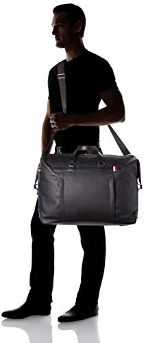 TOMMY HILFIGER Sporttasche mit viel Stauraum Daten Sporttasche: o Maße: Breite ca. 47 cm, Höhe ca. 34 cm, Tiefe ca. 23 cm o Gewicht: ca. 1300 g o Farbe: Black (Schwarz) o 2 Henkel: ca. 49 cm o 1 Schulterriemen abnehmbar, stufenlos verstellbar: ca. 101 cm – 181 cm o Material: 100% Polyvinylchlorid o Lieferumfang: TOMMY HILFIGER Sporttasche mit Etikett, Schulterriemen Ausstattung Sporttasche: o Sporttasche wird mit Two Way Zipper geschlossen o Im Hauptfach 1 Einschubfach und 1 Zipperfach o Auf der Vorderseite 2 Zipperfächer o Mit verstärktem Boden und Schutzfüßchen ausgestattet o Besitzt geräumiges Hauptfach o Das TOMMY HILFIGER Logo ist gut sichtbar eingearbeitet TOMMY HILFIGER Coated Canvas Duffle – Die praktische Sporttasche Ob Sie eine Sporttasche oder Reisetasche suchen spielt hier keine Rolle. Diese Tasche von TOMMY HILFIGER vereint beides in einem. Im geräumigen Hauptfach finden Ihre Sportsachen fix einen Platz. Das lässig, sportliche Design ist zudem top modern und macht Sie zum nächsten Star. Zudem können Sie die TOMMY HILFIGER Coated Canvas Duffle angenehm mit den beiden Henkeln tragen.