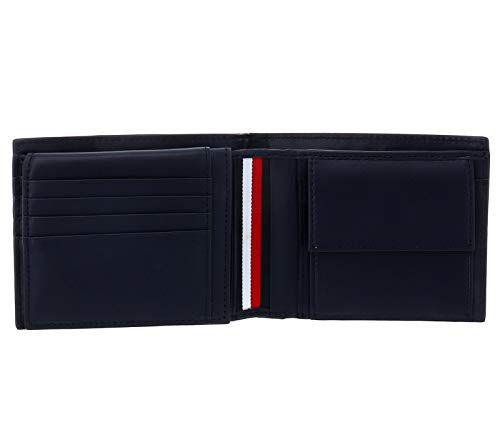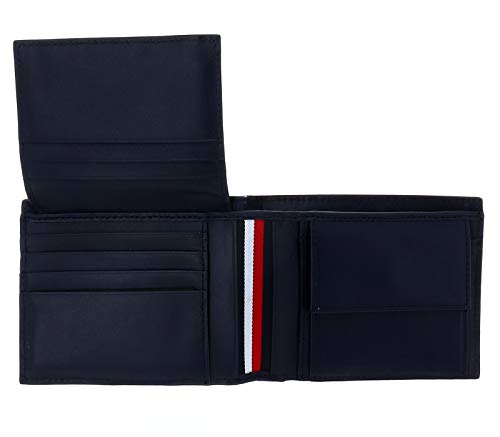 TOMMY HILFIGER Geldbörse in schickem Look Daten Geldbörse: o Maße geschlossen: Breite ca. 13,5 cm, Höhe ca. 10 cm, Tiefe ca. 1 cm o Maße offen: Breite ca. 25 cm, Höhe ca. 10 cm o Gewicht: ca. 110 g o Farbe: Sky Captain (Blau / Weiß / Rot) o Material: Rindsleder o Lieferumfang: TOMMY HILFIGER Geldbörse mit Etikett in TOMMY HILFIGER Geschenkbox Ausstattung Geldbörse: o 11 Fächer für Kreditkarten, EC Karten, Visitenkarten etc. o 5 Seitenfächer für Einkaufszettel, Kassenbon etc. o 2 Geldscheinfächer o 1 Fach für Münzgeld / Kleingeld o Das TOMMY HILFIGER Logo ist gut sichtbar eingearbeitet TOMMY HILFIGER Leather Stripe CC Flap and Coin – Die Geldbörse für den modernen Mann Diese TOMMY HILFIGER Leather Stripe CC Flap and Coin ist genau das richtige Produkt, wenn Sie einen treuen Begleiter für viele Jahre gesucht haben. Im hochwertigen Leder ist die Geldbörse bestens verarbeitet und in schickem Design ein echter Hingucker. Mit zarten Details, hochwertigem Leder und schickem Design ist die vor allem für stilbewusste Männer ein Muss. Sie können in den Fächern Ihre Karten geordnet aufbewahren und sparen sich damit lästiges Suchen an der Kasse. Das Logo-Muster lockert den Look der Geldbörse ideal auf. Durch die Qualität und durch das zeitlose Design ist die Geldbörse ein jahrelanger Begleiter.