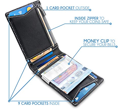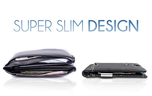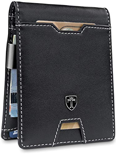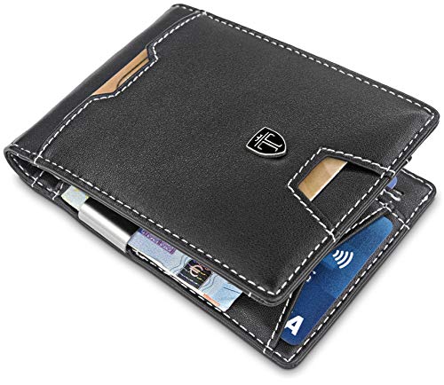Schnauze voll von dem dicken Geldbeutel, der deine Hosentasche ausbeult? Mit dem Kreditkartenportemonnaie von Travando bringst du bis zu 10 Karten und Geldscheine in einem schmalen Kartenetui unter. Das Besondere an diesem Herrenportemonnaie ist das edle Aussehen. Oberflächenmaterial einem satten Schwarz, das von dem Kontrastton Orange hervorgehoben wird. Dazu kommt die silberfarbene Geldklammer und ein praktisches Münzfach, das den Geldbeutel vollkommen macht. Mit dem Travando Kartenetui hast Du: Platz für bis zu 10 Karten RFID-Schutz für alle 10 Karten Platz für einige Geldscheine Besondere Merkmale: Eingestanztes Logo RFID-Schutz Silberfarbener Geldclip Münzfach RFID-Schutz Die RFID-Schutzfolie verhindert das Auslesen sensibler Daten durch Unbefugte. Mit der RFID-Technik (Radio-Frequency-Identification-Technik) lassen sich per Funk Daten auslesen, die sich auf Chips von Kreditkarten, Personalausweis, Krankenkassenkarte etc. befinden. Um dies zu unterbinden, blockiert die zwischen Obermaterial und Futter eingearbeitete Folie den Funkkontakt. Abmessungen: Maße: 11,5 x 8,5 x 1,5 cm (geschlossen und leer) Gewicht: 65 Gramm (Leergewicht) Das Kreditkarten-Etui eignet sich super als Geschenk zum Vatertag, Geburtstag, Valentinstag, Weihnachten, Ostern oder Du beschenkst Dich einfach selbst damit. Leg das Kreditkarten-Etui jetzt in den Einkaufswagen und beseitige die Beule in der Hose(ntasche)!