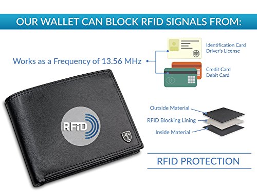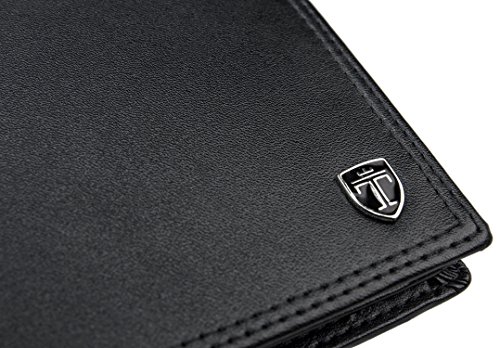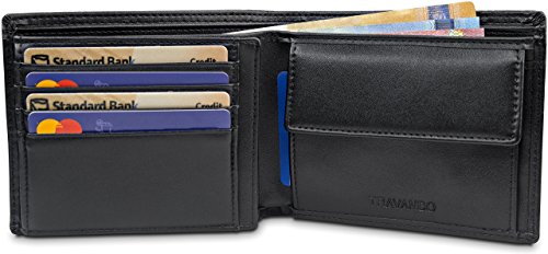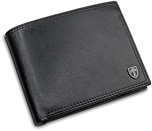 Du suchst nach einem klassischen Geldbeutel mit viel Stauraum? Mit dem Portemonnaie von Travando bringst du bis zu 14 Karten und Geldscheine in einem großen, bezahlbaren Geldbeutel unter. Das Besondere an diesem Herrenportemonnaie ist das schlichte Design. Oberflächenmaterial ist in einem satten Schwarz gehalten, das von einem graphitgrauen Innenfutter kontrastiert wird. Mit dem Travando Geldbeutel hast Du: Platz für bis zu 14 Kreditkarten RFID-Schutz für alle 14 Kreditkarten Platz für bis zu 500 Euro Geldscheine Ein großes Münzfach Ein Ausweisfach mit Sichtfenster Besondere Merkmale: Metall Emblem RFID-Schutz Großer Stauraum RFID-Schutz Die RFID-Schutzfolie verhindert das Auslesen sensibler Daten durch Unbefugte. Mit der RFID-Technik (Radio-Frequency-Identification-Technik) lassen sich per Funk Daten auslesen, die sich auf Chips von Kreditkarten, Personalausweis, Krankenkassenkarte etc. befinden. Um dies zu unterbinden, blockiert die zwischen Obermaterial und Futter eingearbeitete Folie den Funkkontakt. Abmessungen: Maße: 12,5 x 10 x 2,5 cm (geschlossen und leer) Gewicht: 78 Gramm (Leergewicht) Das Portemonnaie eignet sich super als Geschenk zum Vatertag, Geburtstag, Valentinstag, Weihnachten, Ostern oder Du beschenkst Dich einfach selbst damit. Leg das Portemonnaie jetzt in den Einkaufswagen und sorge für einen edlen Auftritt!