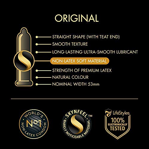 Kondome ohne Latex von Skyn für Deinen Schutz ohne Allergien! Die Kondome von Skyn bestehen aus hochwertigem Polyisopren, einem wissenschaftlich neu entwickelten Material, das speziell für die Herstellung von Kondomen konzipiert wurde und 100% latexfrei ist. Polyisopren ist eine synthetisch hergestellte Version von Latex, die einzigartig weich ist und deshalb ein extrem angenehmes, natürliches Tragegefühl vermittelt. Allerdings enthält es keine der allergieauslösenden Proteine, die sich in herkömmlichen Latex-Kondomen befinden und ist deshalb auch für Latex-Allergiker geeignet. Kondome von Skyn sind ideal für Dich, weil sie extrem dünn, und trotzdem extrem reißfest sind super weich und extrem dehnbar sind einzigartig sanft sind für mehr Gefühlsechtheit; und laut klinischen Tests für ein gesteigertes Empfinden sorgen Wir empfehlen, Kondome von Skyn mit einem lang anhaltenden Gleitmittel zu kombinieren für ein gesteigertes Erlebnis für beide Partner! „Endlich ein latexfreies Kondom, das auch bezahlbar ist. Mit latexfreien Kondomen verspüre ich weder während noch nach dem Sex ein Jucken oder Reiz. Kondome von Skyn sind einfach fantastisch!“