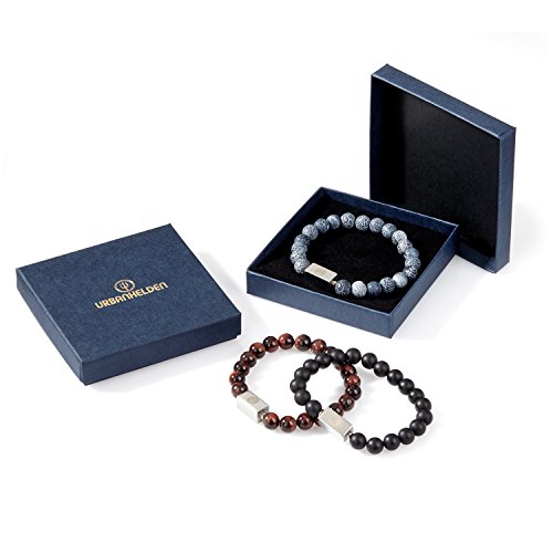 Perlen-Armband aus ca. 8 mm Halbedelsteinen Armbandlänge: ca. 17 – 22 cm Breite: ca. 8 mm Material: Perlen – HalbedelsteineFarbe: Tigerauge (Braun), Sodalit (Blau), Obsidian / Onyx (Schwarz) (bitte die gewünschte Farbe auswählen) Verschluss:Gummizug Besonderheit:Silberfarbene, quadratische URBANSTYLES – Logoperle aus Edelstahl Verpackung: Edle URBANSTYLES Geschenkbox Dies coole Armband aus Perlen ist ein absolutes Must-Have für trendbewusste Männer. Das Perlenarmband aus Halbdelsteinen ist nicht nur lässig, sondern sorgt auch für einen coolen Hingucker. Zudem wird den Perlen eine beruhigende Wirkung nachgesagt. In jedem Fall aber wird es dein neues Lieblingsteil. Lieferumfang: 1 Stück