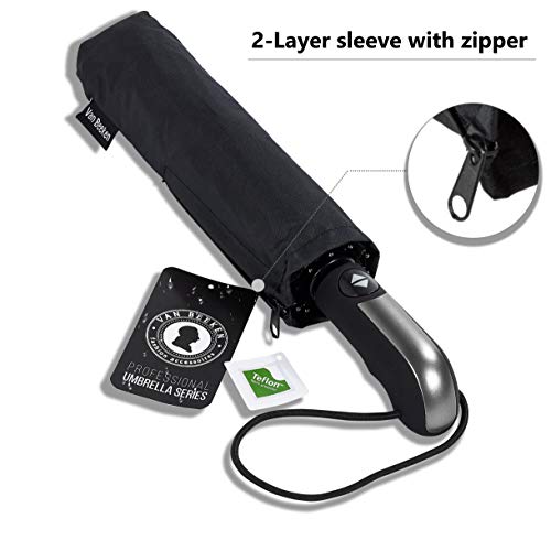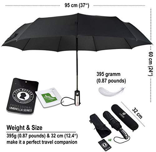 VAN BEEKEN steht für die Premiumlinie A+ unserer Automatik Regenschirme auf Amazon – gefertigt aus besonders stabilen und langlebigen Materialien in Designer-Qualität für besonders anspruchsvolle Damen und Herren Die wesentlichen Vorteile der VAN BEEKEN Premiumlinie A+ im Überblick: besonders windfeste Rahmenkonstruktion mit 9-fach Fiberglas Verstrebung für sehr hohe Windstärken die spezielle Webung der 210T Schirmbespannung für noch wasserdichteres & schneller trocknendes Material vollautomatische Auf-Zu-Mechanik mit 100% zuverlässiger Automatik speziell entwickelte und zertifizierter Teflon-Beschichtung von DuPont für besonders starken Schutz (wasserabweisend, schnelltrocknend, schmutzabweisend, schimmelresistent) Lauchbauweise für geringes Regenschirm Gewicht (395 Gramm) kompakte Abmessung (31 cm geschlossen) und komfortable Spannweite (95 cm geöffnet) besonders ergonomischer Griff mit Noppen und Anti-Rutsch Beschichtung klassisches Design und umfangreiches Zubehör (Reiseetui und Hardcase) Geschenkidee: Der Regenschirm ist ein schönes Geschenk für Männer / Frauen, Papa / Mama, Ehemann oder den besten Freund zu vielen Anlässen wie Geburtstag, Ostern, Weihnachten, Vatertag, Hochzeitstag, Valentinstag Lieferumfang: 1 x Regenschirm der A+ Premiumserie VAN BEEKEN 1 x robustes Reise-Etui (Hardcase) 1x Stoffhülle mit Reißverschluss