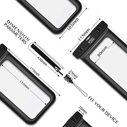 √Eine Hülle erfüllt alle AnforderungenDie vielseitige YOSH wasserdichte Universalhülle ist passend für alle Geräte bis zu sechs Zoll Diagonale, einschließlich der Smartphones iPhone 6s, iPhone 6s Plus 6 Plus, Samsung Galaxy S6, Sony, HTC, LG, Motorola, Nokia und Blackberry. Die universelle Größe ist ideal für Cross-Device-Nutzer und die große Innenfläche ermöglicht es Ihnen Bargeld, Kreditkarten zu führen.√Schützt Ihre SachenDie belastbare YOSH wasserdichte Universalhülle ermöglicht es Ihnen, Ihren aktiven Lebensstil zu genießen, ohne sich Gedanken über Schäden an Ihrem Gerät machen zu müssen, da die Hülle es vor Elementen wie Schmutz, Staub, Sand und – ja – sogar Wasser schützt! Jede Hülle wird für zwei Stunden unter Wasser getestet, um die Belastbarkeit zu gewährleisten.√Einzigartige TechnologieDie beständige YOSH wasserdichte Universalhülle verfügt über eine starke Bandschnalle, einen sicheren Schwenkriegel und doppelseitige, durchsichtige Fenster die Sicherheit, Zuverlässigkeit und Benutzerfreundlichkeit bieten. Auf diese Weise können Sie Fotos machen, Textnachrichten verschicken, oder auf E-Mails antworten, ohne das Gerät aus der Hülle zu entfernen.√Ungezwungenheit fühlenDie luftdichte YOSH wasserdichte Universalhülle wird Sie nicht in Ihrem aktiven Outdoor-Lebensstil stören. Fühlen Sie sich frei zu schwimmen, fischen, wandern, zelten, Boot zu fahren oder in Ihren anderen Lieblings-Outdoor-Aktivitäten nachzugehen.√Bedingungslose lebenslange GarantieWir bei YOSH sind so von der Qualität und Leistung der wasserdichten Universalhülle überzeugt, dass wir sie mit einer bedingungslosen Garantie auf Lebenszeit herausgeben. Wenn Sie Probleme jeglicher Art mit der Hülle haben, kontaktieren Sie uns bitte, damit wir uns darum kümmern.√Paketinhalt:YOSH wasserdichte Universalhülle x 2 Trageband x 2 Garantiekarte und Bedienungsanleitung x 1