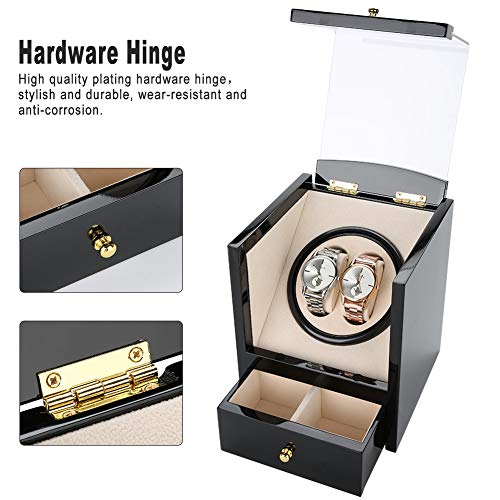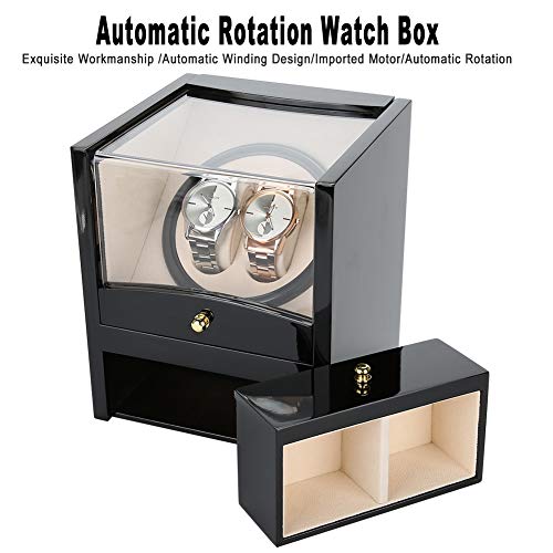 Eigenschaften: 1. Die saubere Oberfläche hat ein lackiertes Klavier und eine automatische Drehung. Geeignet für Familien oder als Geschenk für Freunde und Familie. 2. Automatisches Design kann die Uhr automatisch zur gleichen Zeit halten. 3. Angetrieben durch einen sehr leisen Motor, kein Einschaltstrom. 4. Einfach zu bedienen, einfach den Knopf drücken. Der Wickelkasten rollt automatisch Ihre beiden Tische auf. 5. Völlig kompatibel, ob es sich um eine Damenuhr oder eine Berg-Herrenuhr handelt, Sie können sehen, dass diese Box ein perfekter Behälter ist. 6. Staub und Feuchtigkeit in der Tat Spezifikationen: Produkttyp: Autorotation Uhrenbox Material: MDF + schwarz Klavierlack gelb Samt Bei Motor: Importierter Typ Stecker: US Spannung: 100-240 V Produktgröße: 18,3 * 18 * 21 cm / 7,2 * 7,1 * 8,3 Zoll Gewicht: ca. 2038 g Batteriemodell: 2 * AA Battey (nicht-Rotationsmodus: Linkslauf für 2 Minuten, dann für 6 Minuten stehen gelassen und anschließend zwei Minuten im Uhrzeigersinn und der Zyklus wird für 6 Minuten wiederholt Packliste :. 1 * automatische Drehtisch Shell * 2 Kissen 1 * Adapter 1 * Reinigungstuch Handbuch 1 * Hinweis: CONTACT Batterien nicht ind enthalten.